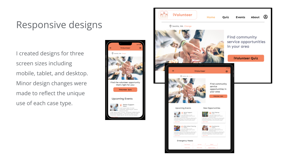 Volunteer App and Responsive Website Case Study Understanding the user Starting the design Refining the design Responsive design Going Forward